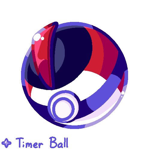 A patient ball, the Timer Ball increases its success rate as time goes on in the battle. Contains/belongs to the Pokemon you attach it to. Can be worn as an accessory.