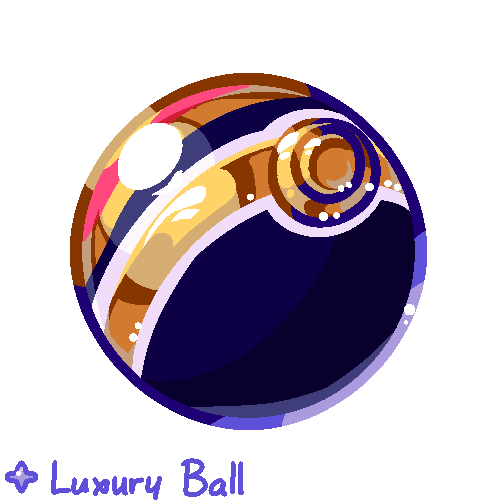 The Luxury Ball raises the rate at which a Pokemon gains Happiness/Friendship. Contains/belongs to the Pokemon you attach it to. Can be worn as an accessory.