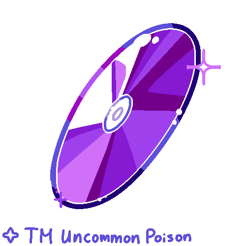 DESCRIPTION: Uncommon TM that allows the user to learn one Poison type move with a base power equal to or less than 100.
