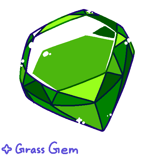 DESCRIPTION: A pretty Gem that boosts the power of Grass Type moves. After use, its power fades. Can be worn as an accessory.