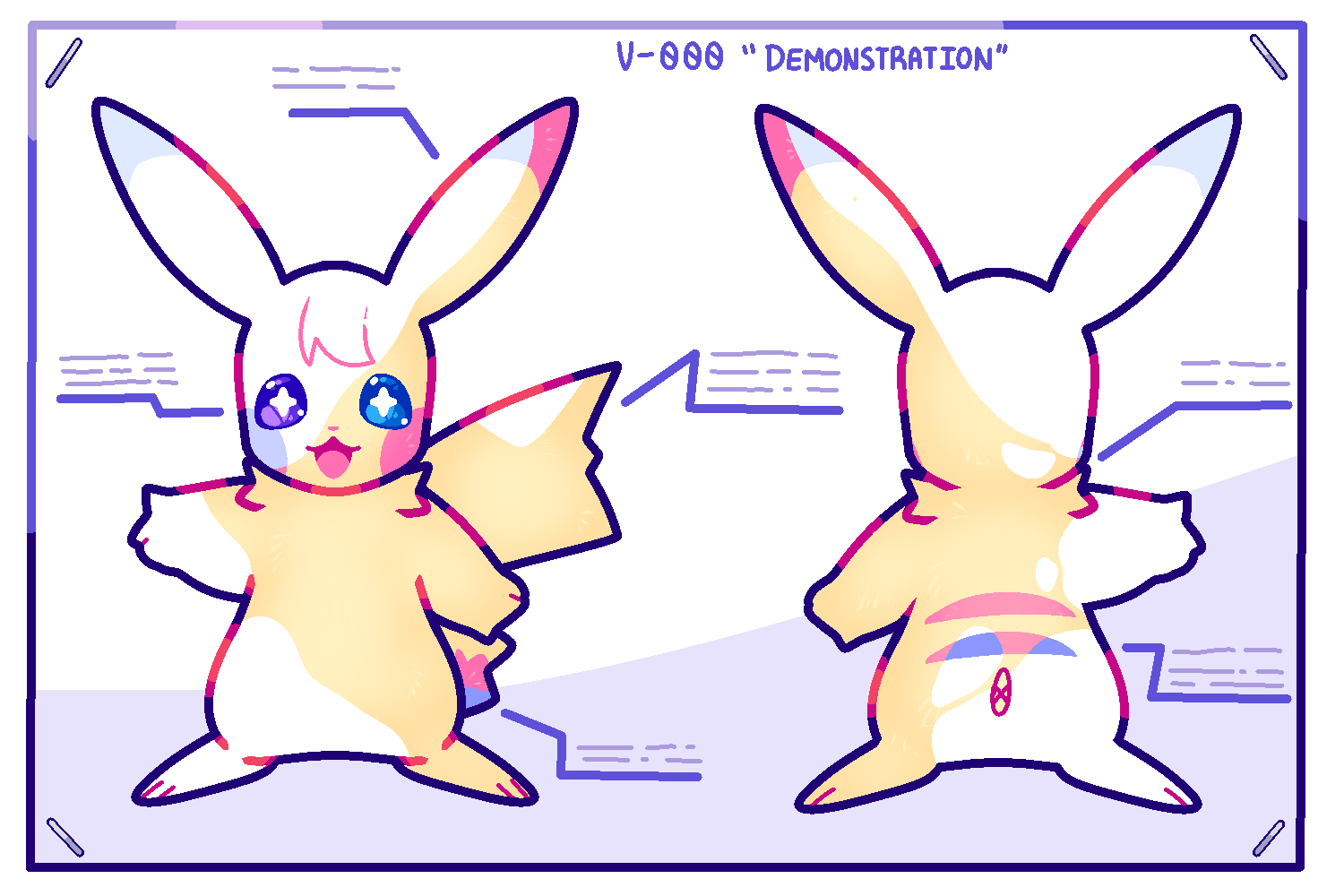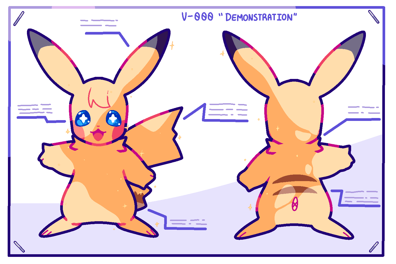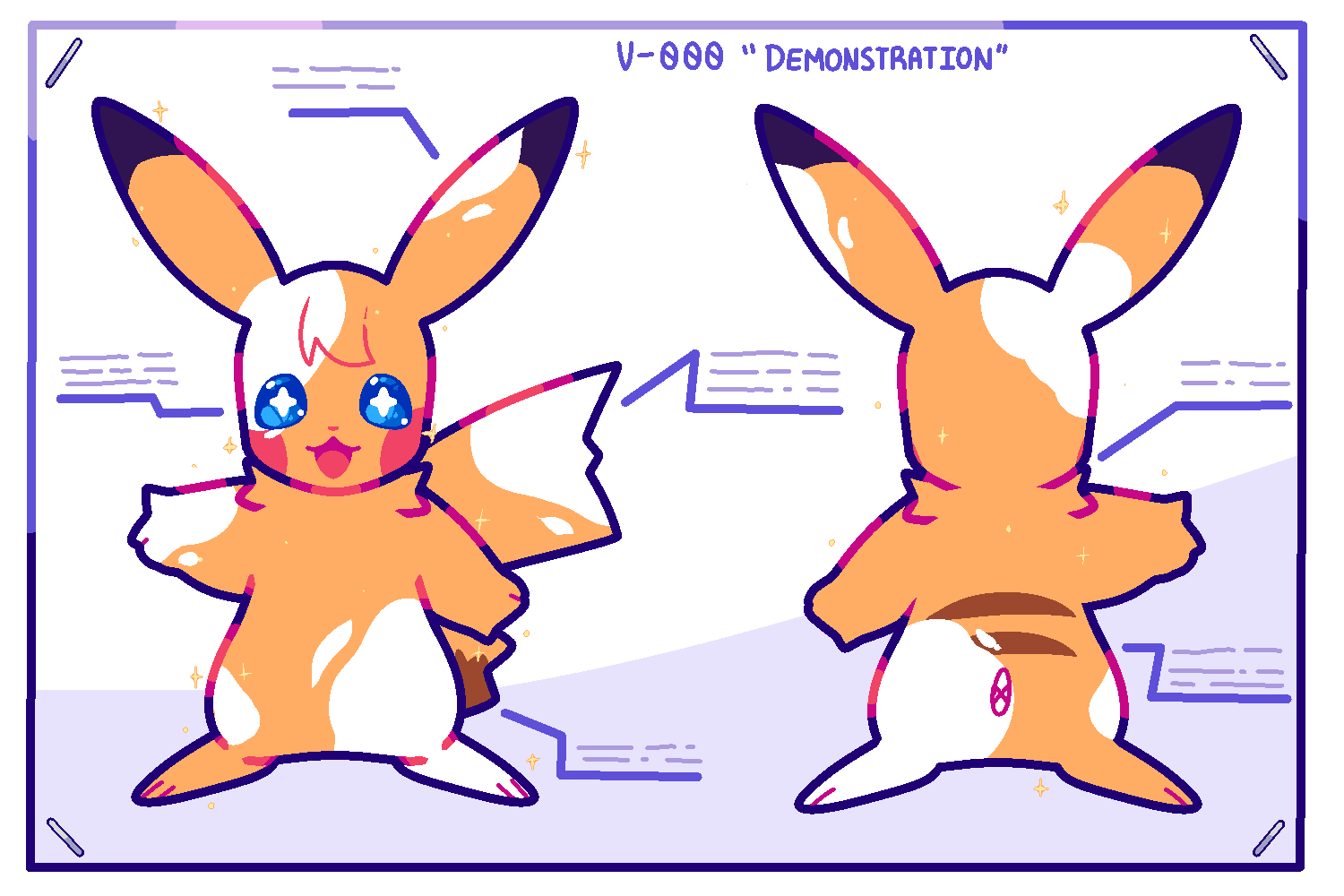 Standard Markings + Chimerism Mutation + Shiny Variant. Note that the shimmery effect isn't present on the non Shiny areas. Because the base grading is visible, the Pokemon can still be graded for colour as a normal Variant would. This example is Grade A (colour) + Chimerism + Shiny.