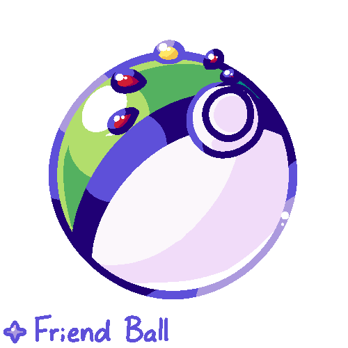 The Friend Ball raises the contained Pokemon's Friendship (or Happiness) base value. Contains/belongs to the Pokemon you attach it to. Can be worn as an accessory.