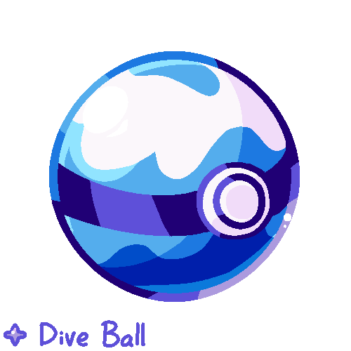A Dive Ball, best used on Water Pokemon or Pokemon found in deep waters. Contains/belongs to the Pokemon you attach it to. Can be worn as an accessory.